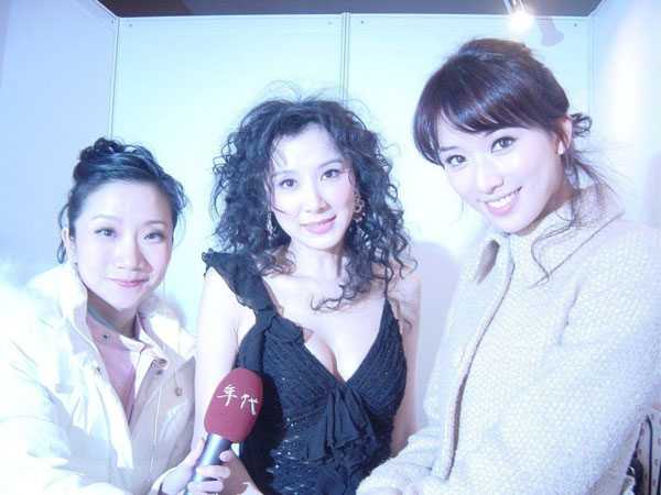 萧蔷(中)和林志玲(右)2005年在陶晶莹(左)的牵线下碰面拥抱。
