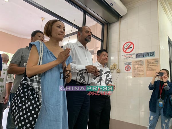 另外,通讯与多媒体部长哥宾星也来到陈建华灵堂,慰问死者遗孀及家属。