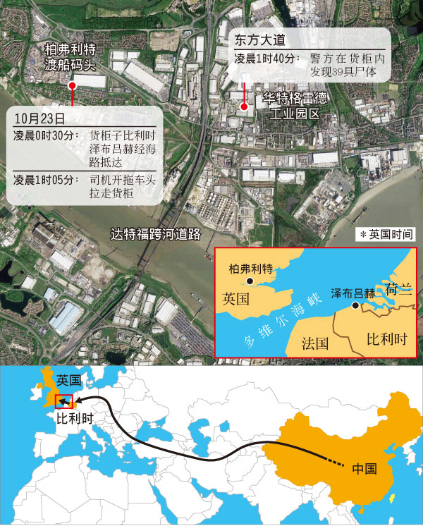警方说,货柜是从泽布吕赫进入英国港口,再由来司机罗宾逊接应。