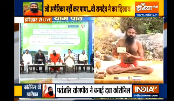 据《今日印度》报道,23日,印度瑜伽大师兰德福(Swami Ramdev)在位于北阿坎德邦帕坦伽利公司总部举行的新闻发布会上,公开了这种药物,并称“全世界一直都在等待有人开发出治疗新冠病毒的药物。它被命名为Coronil。”