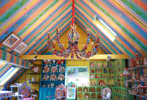 (伦敦8日综合电)英国格洛斯特郡一名艺术家留着鲜亮粉红头发,更利用30多年的时间,把破旧小屋打造成真人大小的娃娃屋,室内配色五彩缤纷且充满童趣,有造型吊灯、亮黄色墙壁、彩色斑点阶梯等。