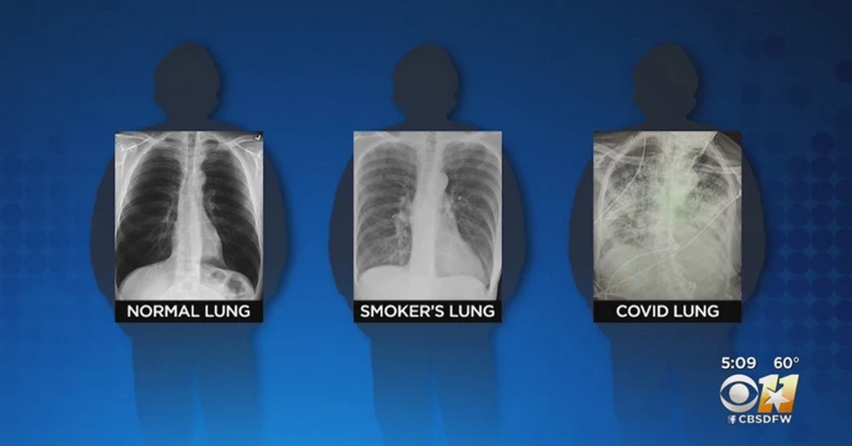 她告诉CBS11新闻称,有症状的新冠肺炎患者,几乎每个人的肺部都有严重损毁,那些无症状的感染者70%至80%情况下肺部也损毁严重。她说,“仍有人说,我没事我没有任何不适,但是如果看他们肺部X光片,就可以看到他们肺部的损伤。”