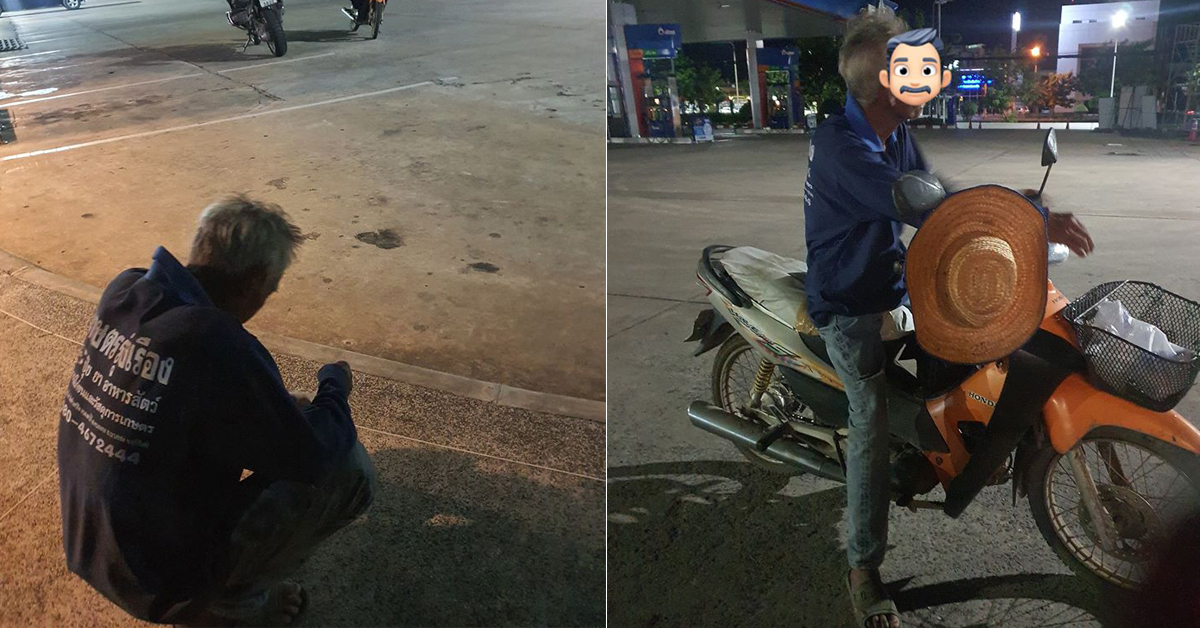 在办完丧事后,不想麻烦家人的他,决定启程返回武里南,然而时值深夜,阿公身上只有300铢(约40.45令吉),于是就打算随便在当地找个警局还是寺庙过一宿就回家,却因为人生地不熟,到最后打算睡油站。