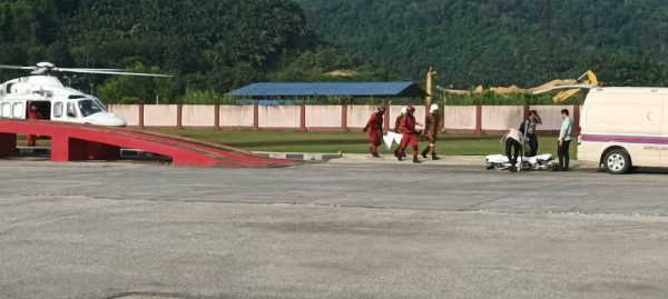 受害者家人向有关当局求救后,获得消拯局飞行组开着直升机深入内陆地区,载送该青年到话望生医院治疗。