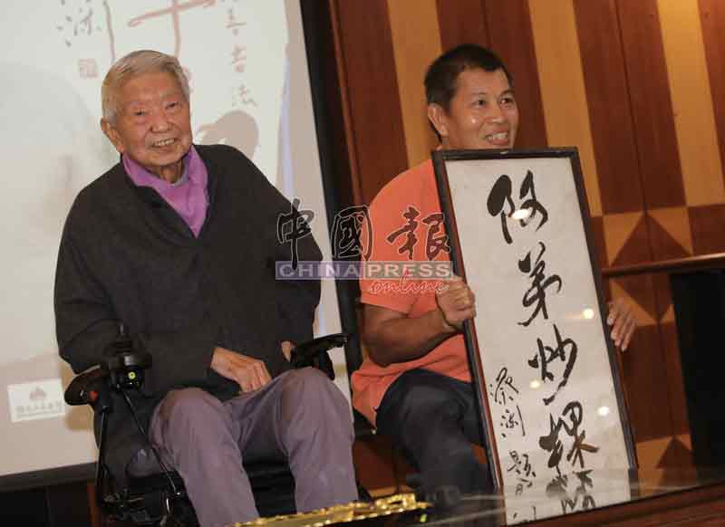 曾获蔡澜为招牌题字的炒粿条档主“阿弟”夫妇,也亲临蔡澜慈善书法展开幕礼现场,以示支持。