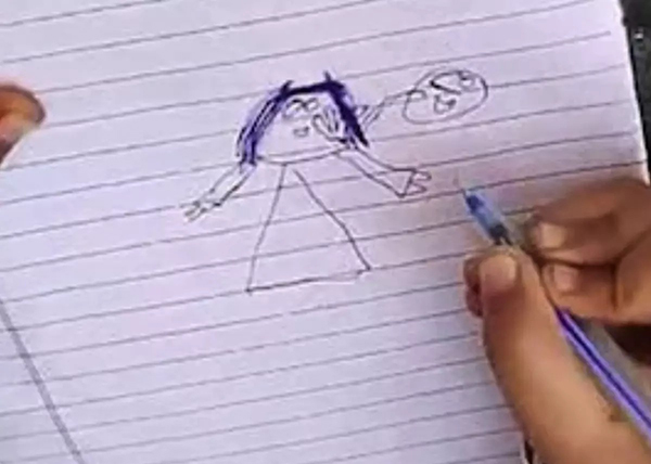 达尔希塔对着媒体镜头透露,当天父亲把妈妈吊起来、再用石头砸妈妈的头、然后把妈妈的身体放下来装进布袋里。女童还在记者面前,即场将妈妈被残杀的情景画了出来,以证明她所说皆是事实。
