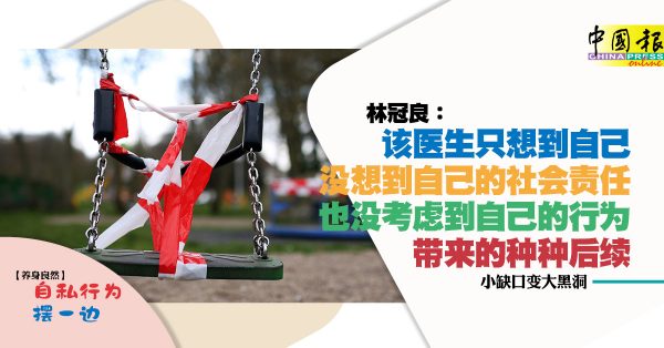 《黄帝内经》中提到“上医治未病,中医治欲病,下医治已病”;营养师也常把“预防胜于治疗”挂在嘴边。当公园只有一个人,绝对没问题,新鲜的空气对健康也有好处。但是,如果限制一个人的外出,就可以预防后面二、四、六、八个人的脱序行为,我觉得是一笔划算的交易和智慧表现。该医生可能就只想到自己,没想到自己的社会责任,也没考虑到自己的行为,可能带来的种种后续。