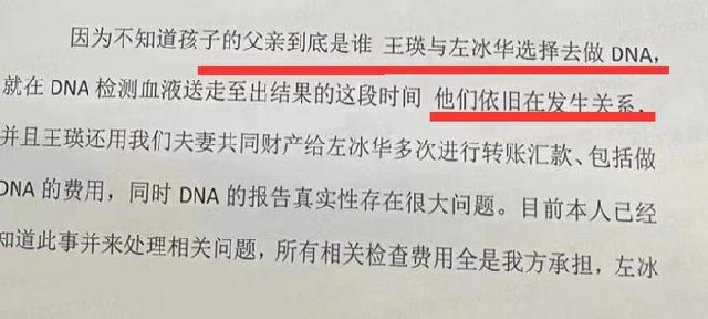 后来,双方关系曝光后,却把纠纷放在腹中孩子问题,王锳做了一个亲子鉴定,对于亲子鉴定结果,王锳的丈夫表示真实性存在问题,字面意思,亲子鉴定结果孩子应该是丈夫的,但丈夫不相信;