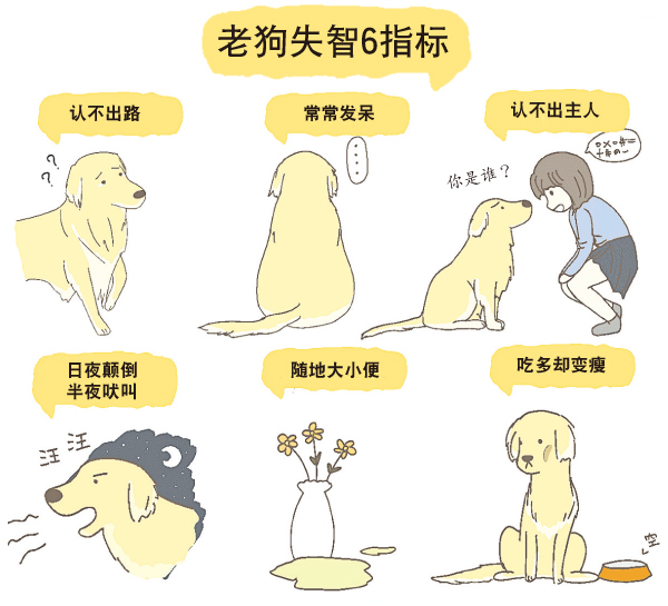 认不出主人,甚至叫它的名字也没反应,这意味着狗狗的大脑已经退化了。