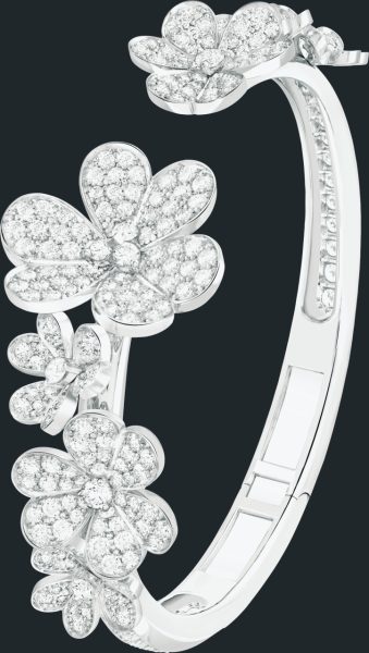 全新的Frivole系列白K金7花手镯,共镶嵌近300颗璀璨美钻,鲜明的线条勾勒婉约动人盛放之美,不对称设计配合微拱的心形花瓣,捕捉到属于春季的自然之美。