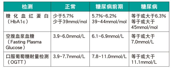 我国一项调查显示,60%调查受访者并不知道前期的血糖指数范围。事实上,指尖采血测试并不能确认是否患有前期。因此,陈教授分析,如果一个人血糖水平值高于正常水平,就需要通过诊所、医院或实验室,做适当血液检查。下方图表是不同类型检测及其相应参考值。