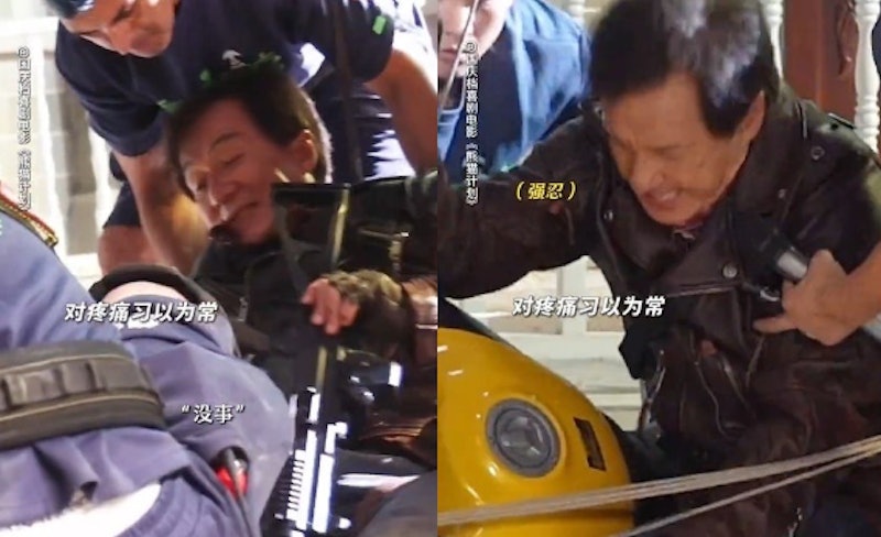 成龙亲自上阵拍飞车戏 不慎摔倒 表情痛苦