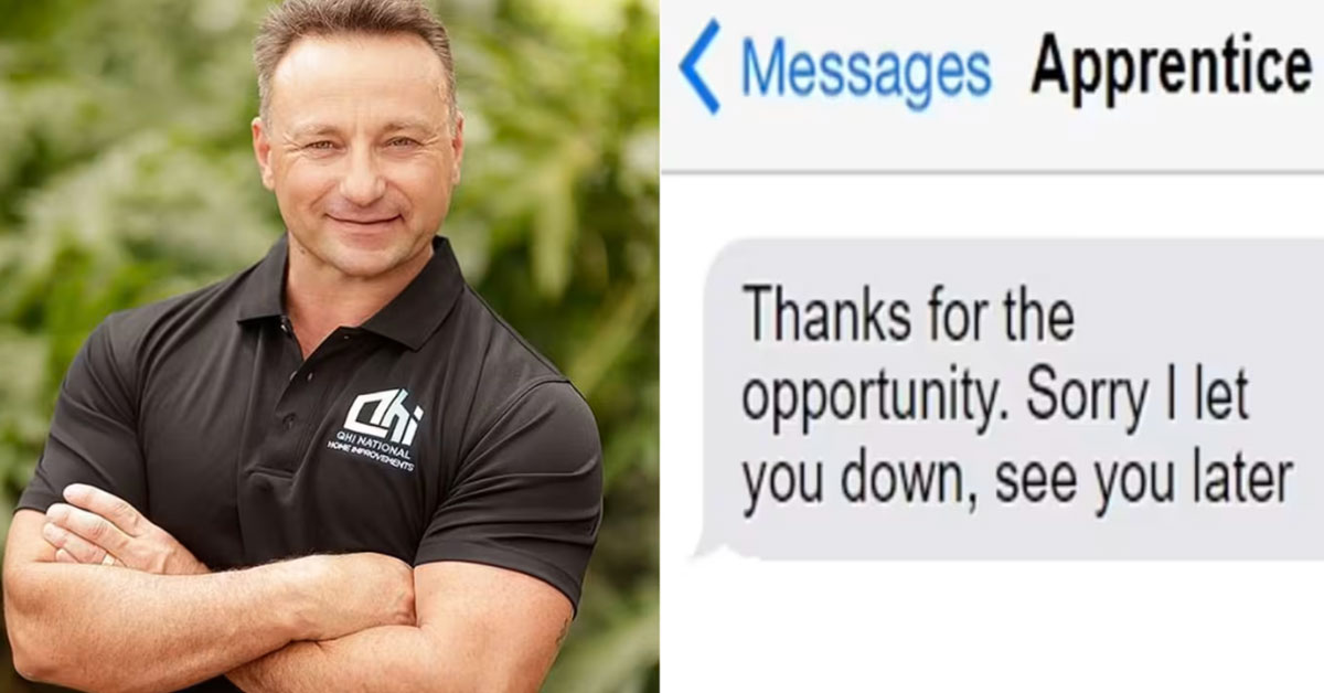 据《每日邮报》报道,建筑公司老板斯科特·查伦(Scott Challen)表示,学徒早前的表现很好,突如其来的辞职让他感到错愕。他表示,学徒事先没有预先给通知,就这样决定要搬去别州。