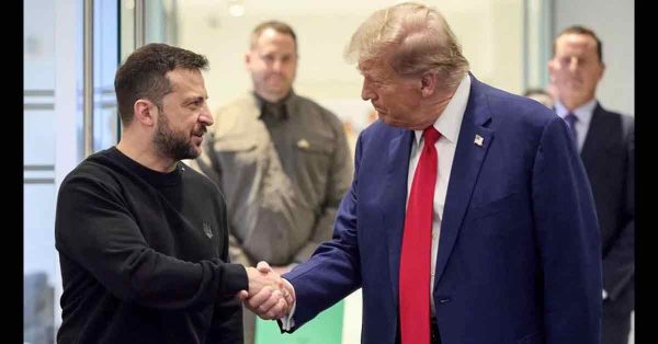 泽连斯基(左)与特朗普今年9月在纽约的特朗普大楼会面。