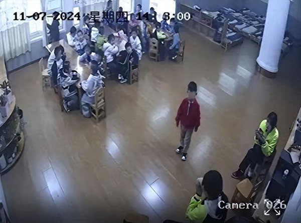 靳先生的孩子在该幼儿园上学,但他孩子所在的班级与中二班不同。靳先生提供了一段时长9分56秒的监控视频,视频显示11月7日下午14时31分,两名女教师在管教孩子过程中,一名女教师揪住孩子的衣襟多次拖拽推搡,还打耳光,甚至用卫衣帽蒙住孩子头部旋转,并用手指戳孩子的头部。另一名女教师则显得冷漠,对这些行为视而不见。