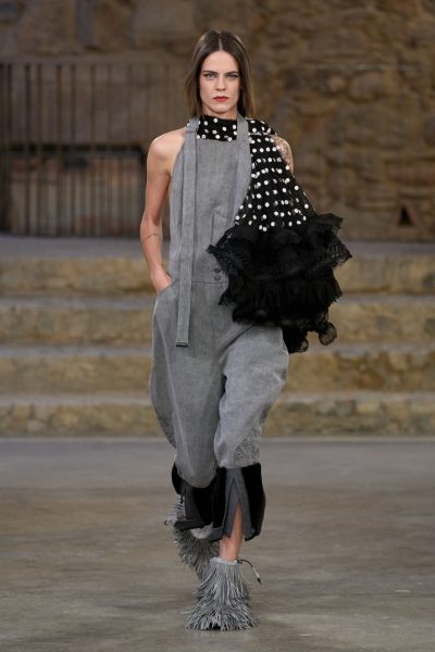 解构风格预计将持续流行。从比喻角度来看,这种将衣物内外翻转、暴露缝线、将服装叠穿的技巧,反映了世界普遍的动荡。穿上连身工作服,你就能随时准备采取行动。