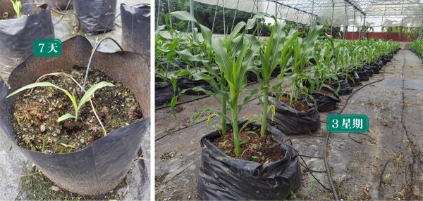 农场内用来种植玉米的泥土,以椰丝、米糠、堆肥等混合成。玉米不需种植在棚内,它需要充足阳光,以及良好的排水系统。