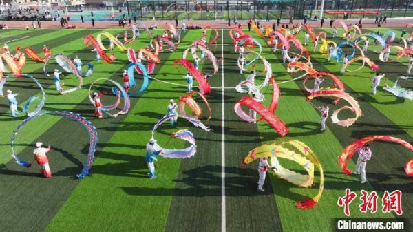 “彩龙”翻飞-- 由中国青海省社会体育指导中心主办的健身项目展演试点活动,周二在西宁市举行,300名健身爱好者进行“飞龙”表演,引民众观赏了解。活动旨在推广健身项目普及覆盖面,为民众提供科学健身技能指导。(中新网)