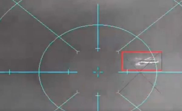 根据乌克兰国防部情报总局发布的影片,一架飞过水面的直升机被多个抛射体锁定为目标,遭到攻击后坠落。