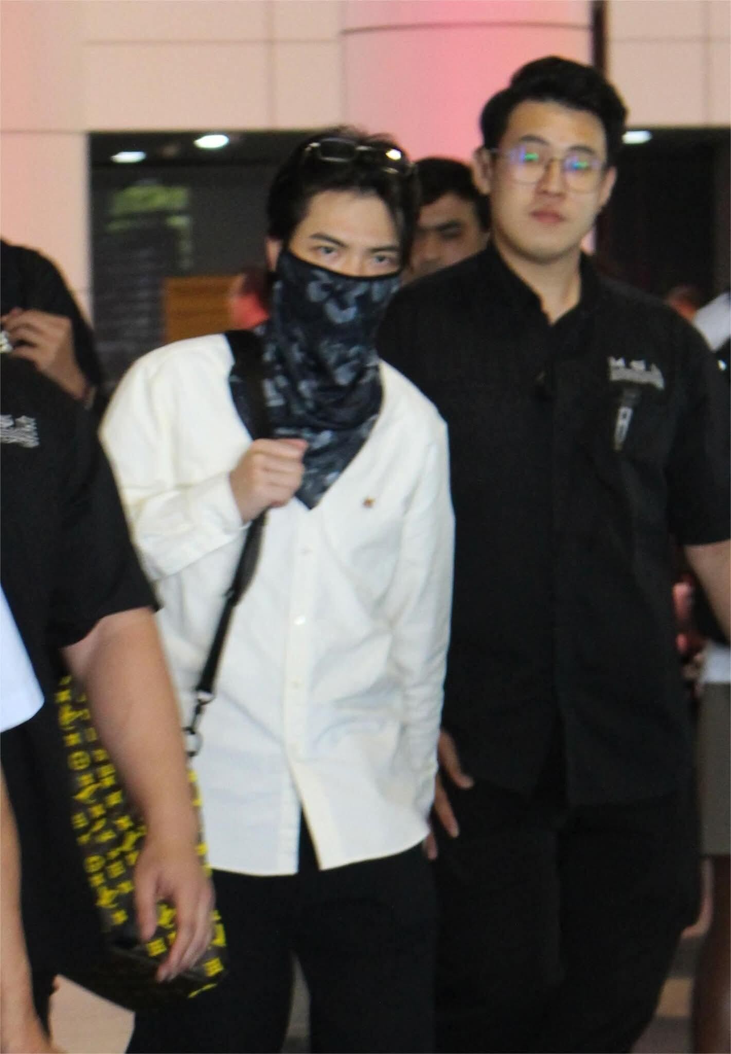 萧敬腾穿著白色长袖衣搭黑裤,头上架著墨镜,戴黑色围巾式口罩,和经纪人老婆Summer(林有慧)一出机场大厅就被铁粉接机追拍。虽戴著口罩,仅露出双眼,仍可隐见萧敬腾一脸倦意,在警卫护送下也边走边向粉丝点头和挥手,直到登上休旅车离去。