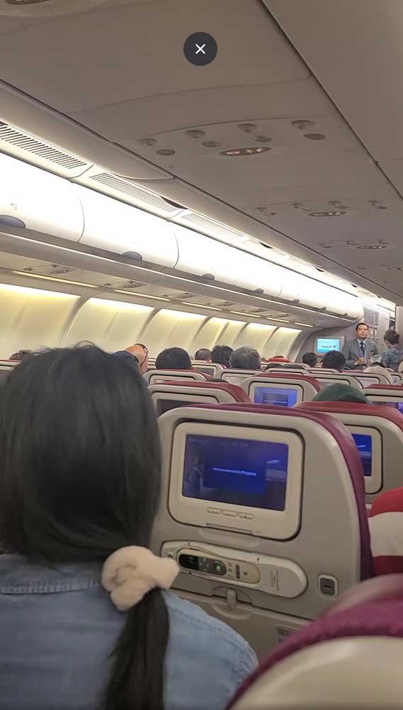 他说:“机上乘客颇为冷静……虽没有惊惶失措,仍有乘客晕机使用呕吐袋。