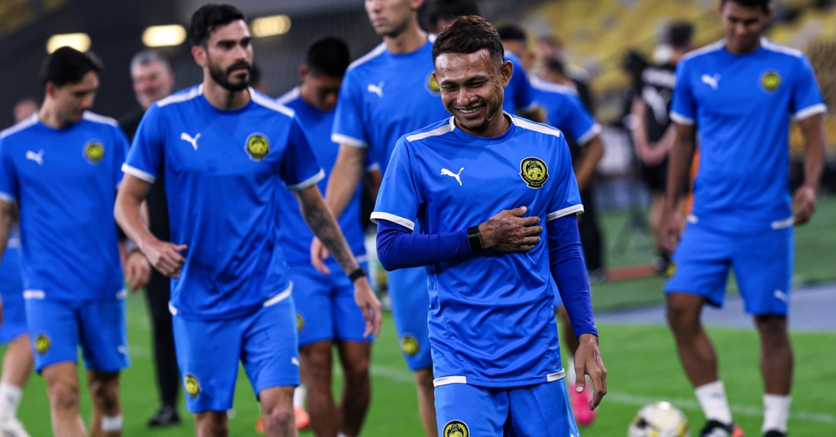 国足边锋费沙哈林(前)从泼酸袭击复原后,近期传出离婚,但他在国足训练中仍保持专注和展现积极心态。(马新社)