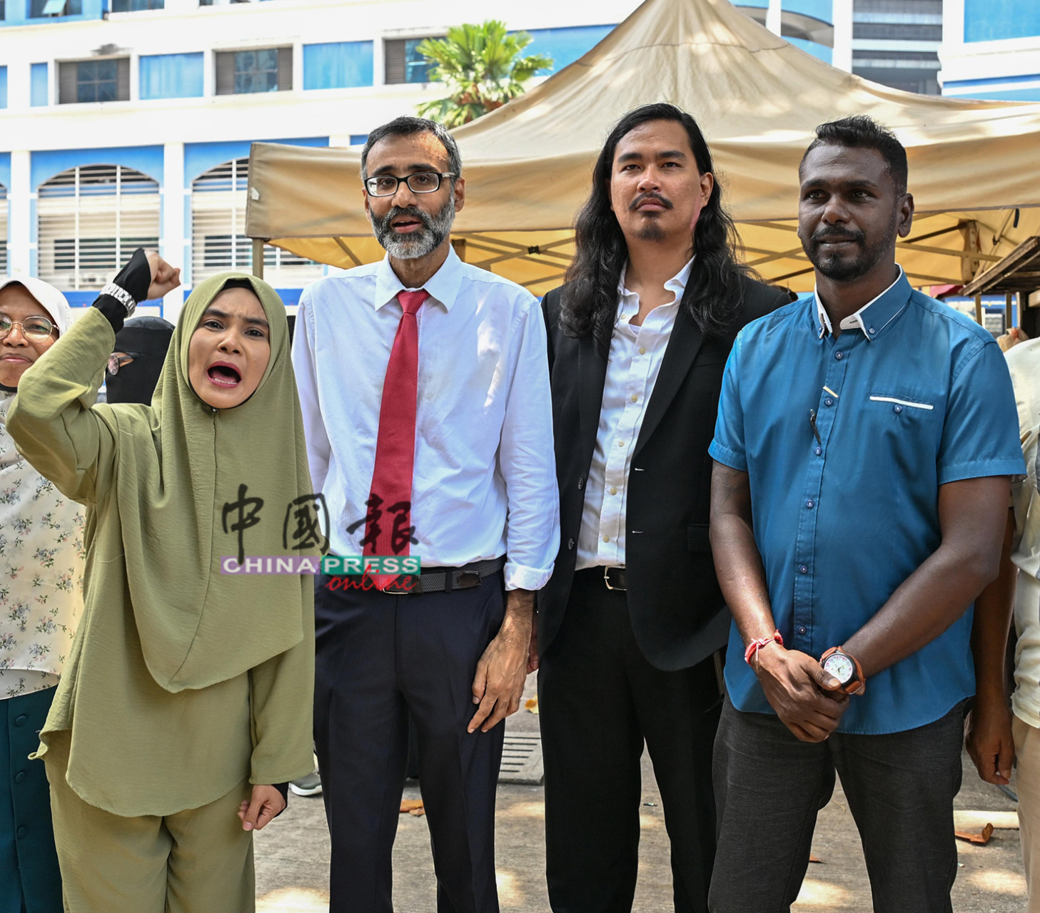 拉菲达依布拉欣与社运分子迈克,今早在金马警区总部录供约一小时后,于下午12时20分步出。