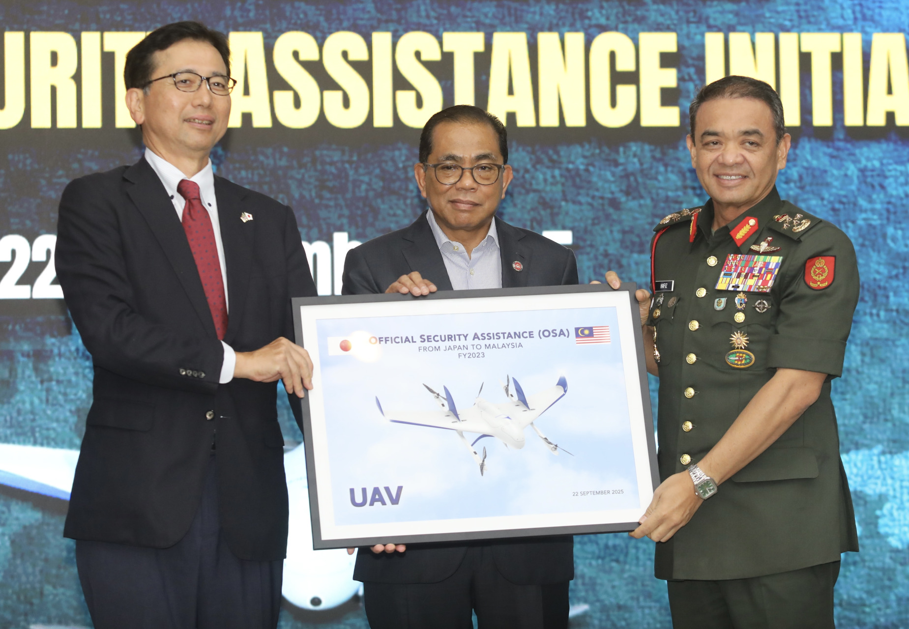 国防部长拿督斯里莫哈末卡立诺丁出席无人机移交仪式,日方由日本驻马来西亚大使四方敬之代表。