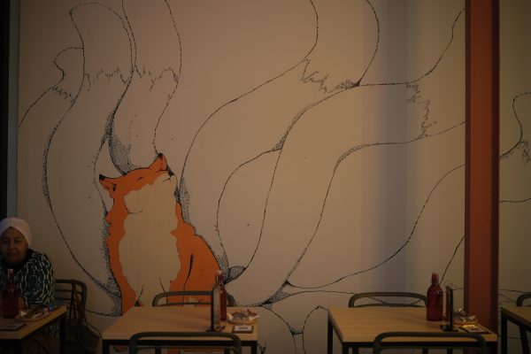 Leon绘制的狐狸插画,凸显出餐厅的主题色彩。
