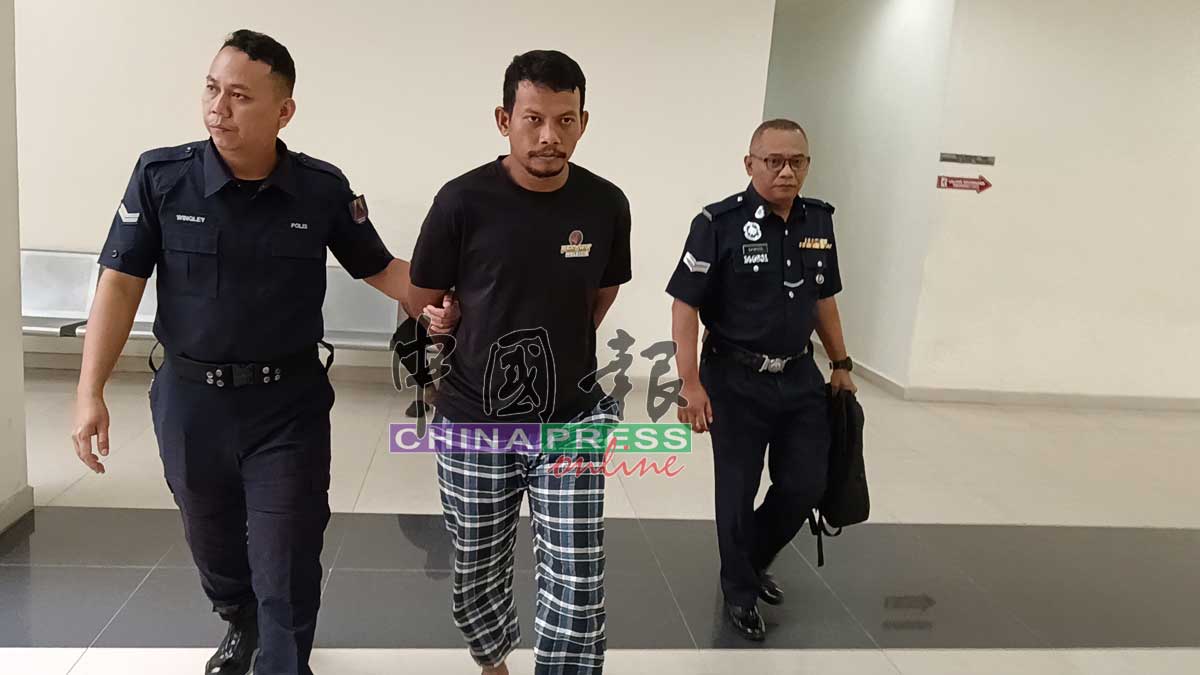 39岁被告莫哈末依万今日被警方押往法庭面对2项控罪,他在麻坡第一地庭法官诺丽曼面前聆听控状后,对控状直认不讳。