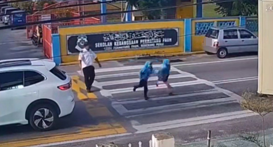 此事故于昨午在峇东埔国小前发生,相信当时正值学校放学时段,过程被附近一个闭路电视摄下。