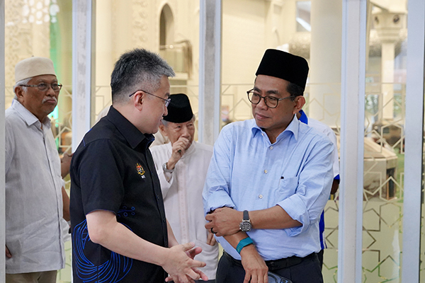 刘镇东(前排左起)和莫哈末卡立诺丁到国防部清真寺致哀。