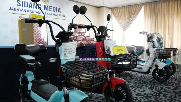 关税局中区执法组主任祖基菲里今日发文告说,当局根据情报,于今年8月14日到一间商店展开突击,充公33个市值3万8108令吉的电动脚车(e-bike)。