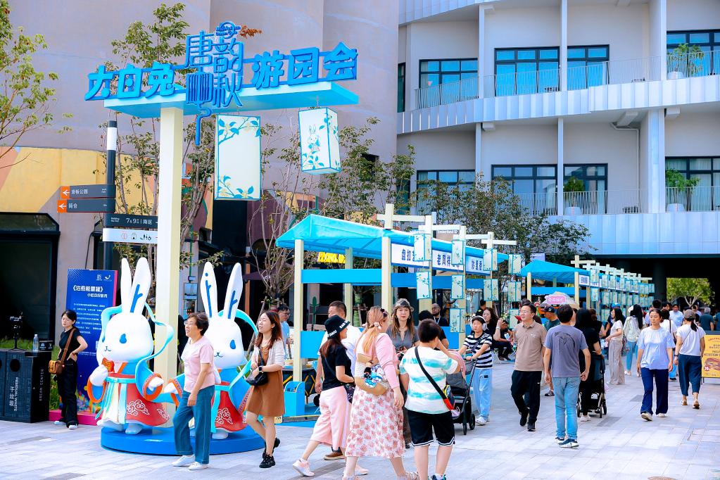 在上海市徐汇区,一场“色香味俱全”的“唐韵中秋”游园会正在上演。这个已有20余年历史的节庆活动与老字号“大白兔”携手,分别在西岸梦中心、上海南站、龙华会、鑫耀·光环Live等地标,设立快闪店和非遗市集,举办快闪活动等,邀请人们跟着“大白兔”扮演的“唐韵兔”感受徐汇区历史文化和时尚生活。