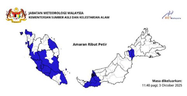 (吉隆坡3日讯)气象局发出警报,半岛与东马沙巴和砂拉越多个地区会有雷雨及刮强风,并会持续至下午3时。