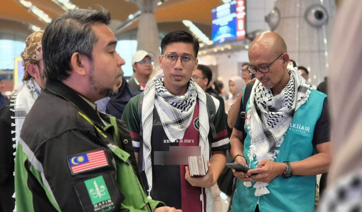 海卡洛曼(中)随同全球坚韧船队(GSF)前往加萨,执行人道任务而被扣押,目前情况不明。(图取自海卡洛曼面子书)