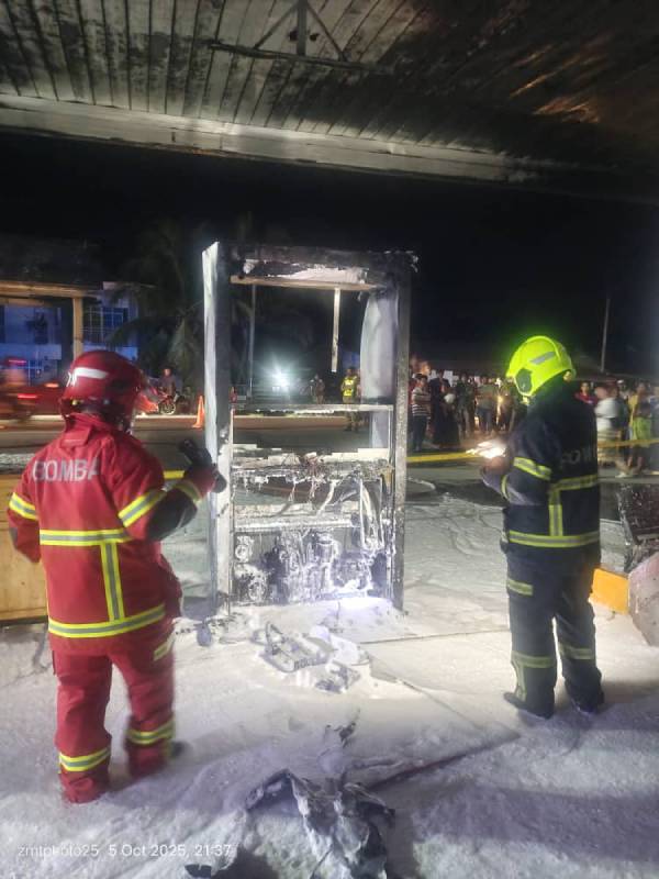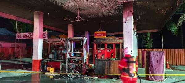 (华玲6日讯)华玲一间Buraq昨晚发生,其中一个油泵被烧毁80%,火势亦波及屋顶,幸没有爆炸或伤亡事件发生。