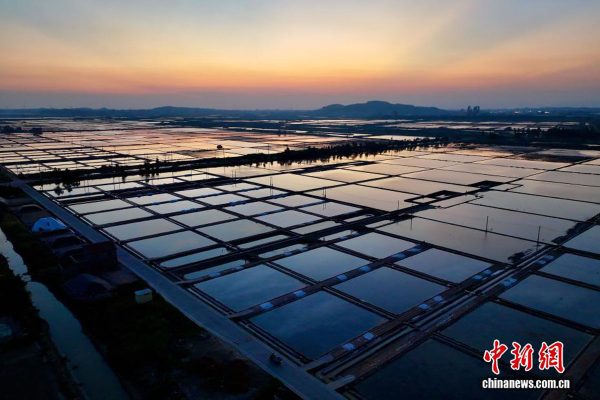 七彩盐田如调色盘——中国福建莆田万亩盐田在落日余晖与海风的滋养下,映照出闪耀斑斓的色彩,宛如大地的调色板,美不胜收。莆田盐场有着近千年的海盐生产历史,至今仍遵循古法晒盐技艺。(中新网)