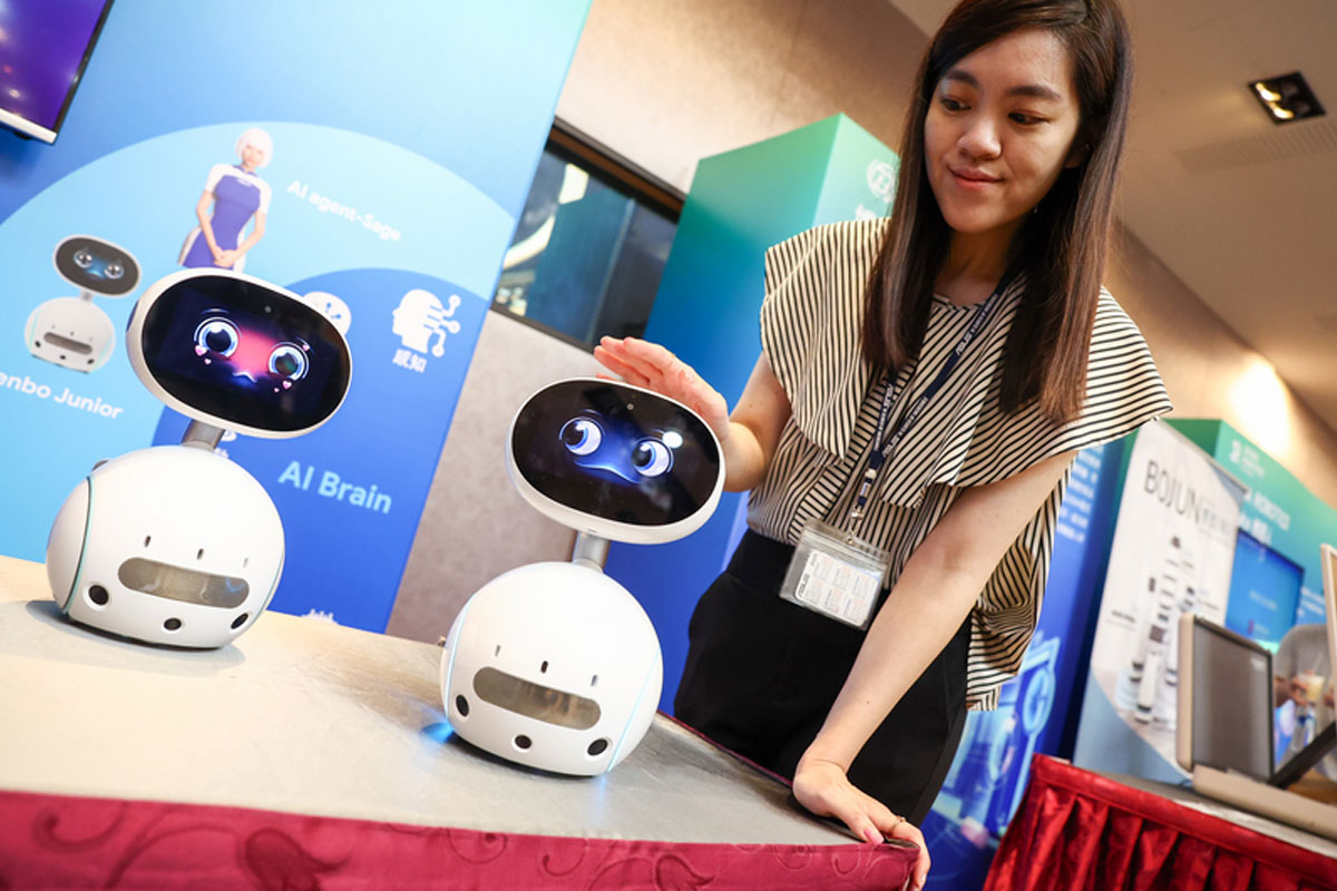 智能机器人--智能机器人应用SIG成立记者会暨论坛,周三在台湾台大国际会议中心举行,参与厂商展示智能机器人相关应用。(中央社)