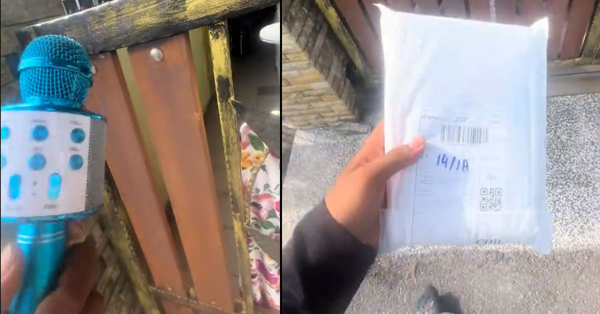 影片中,外送员原本在嘀咕屋主未回应讯息,抬头却看到墙边的麦克风,愣了片刻后便顺势拿起对着空气高喊:“你好,你的包裹到了!”声音瞬间在社区回荡,宛如“宅门演唱会”开场。