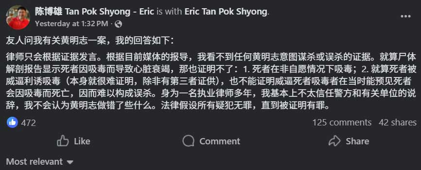 黄明志卷命案 Part 100|陈博雄:根据目前报道 “看不到谋杀误杀证据”