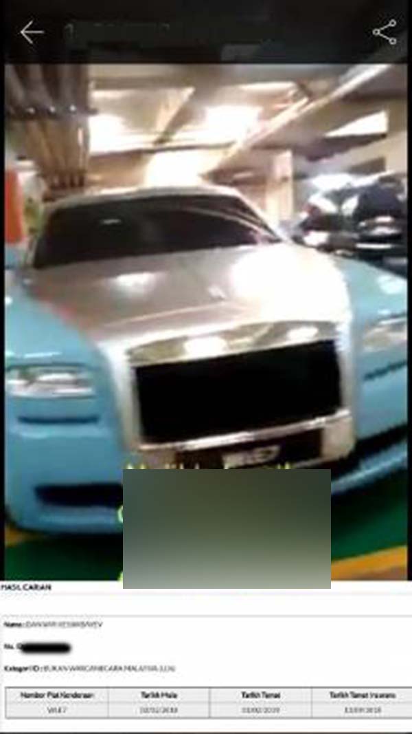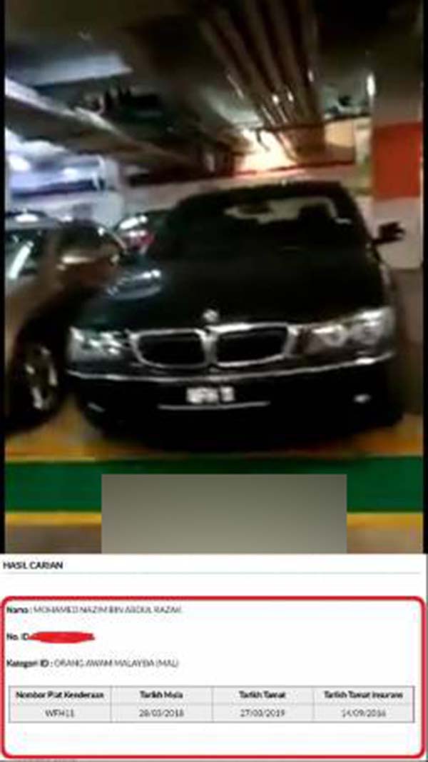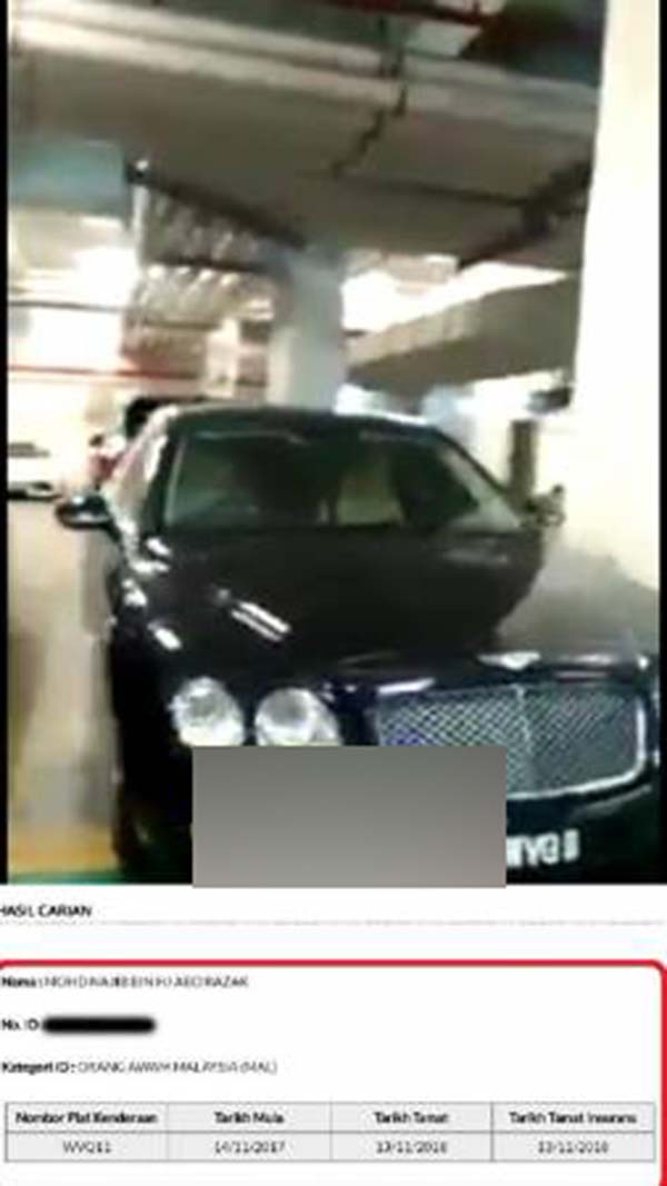 如今,“Curi-curi Wang Malaysia”面子書專頁根據這些豪華車的車牌號碼,到陸路交通局官方網站的系統查證,證實了6輛豪華車分別是納吉本人、女婿達尼及胞弟拿督莫哈末尼占所擁有。