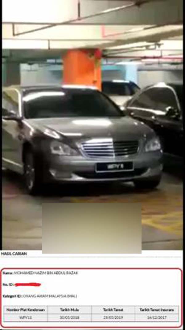 該貼文還指出,根據系統結果顯示,納吉名下還擁有另5輛汽車;由於無法通過該系統查詢車輛的款式,只能推測大部分的車輛為馬賽地房車。