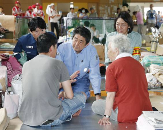 日本首相安倍晉三取消從周三起的國際行程,他原定出訪比利時、法國、沙地阿拉伯和埃及等國。他周三飛到災區視察災情,首站抵達重災區岡山縣視察情況。