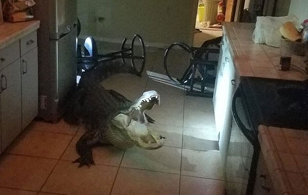 (华盛顿3日综合电)美国佛罗里达州一户人家31日凌晨突然传出巨大撞击声,77岁女屋主威施胡森立刻惊醒并起身下床确认情况。只不过,出现在她眼前的居然一只长约11英尺(约3.35公尺)的鳄鱼,弄坏餐桌、打破几瓶红酒,所幸屋主并未受伤。