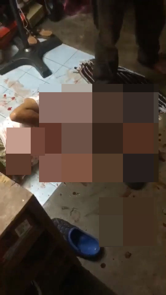 根据流传的两个短片(各约4秒),其中一个视频显示女伤者倒在血泊,嫌犯站在旁边说了一句“你告诉他,我很生气,难道不能大声说话吗?”,而另一个视频则清楚看见女伤者儿子脖子上的伤口。