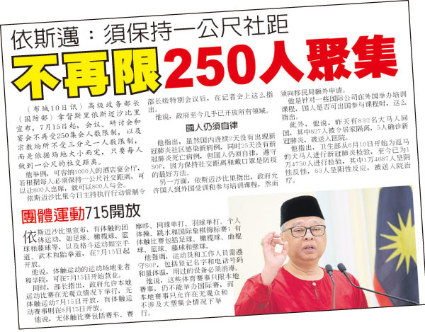 “自6月11日复苏期行动管制令以来,已很少新病例,本地病例持续个位数增。 我认为,只要公众遵守SOP,就可以避免潜在的新病例和产生新感染群。”