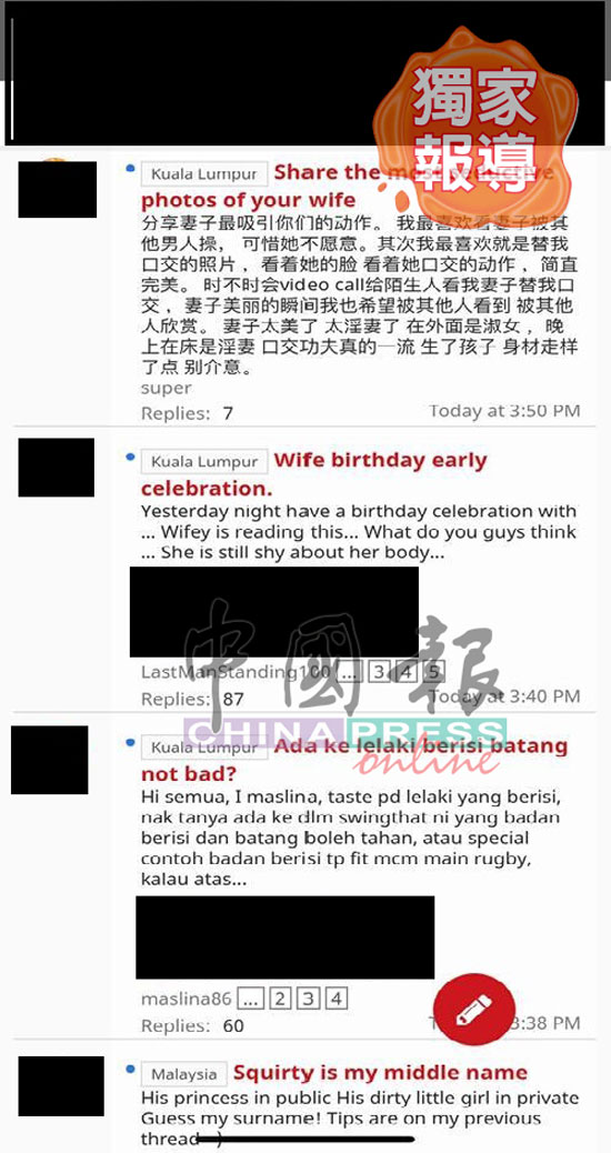 (吉隆坡6日讯/独家报导)继Telegram被揭“大马N号房”事件,才发现淫乱之事在多年前已活跃于社交网站,其中最颠覆道德底线的“换妻俱乐部”非常热烈,群内不同族群的参与者,互换妻子“嚐鲜”!