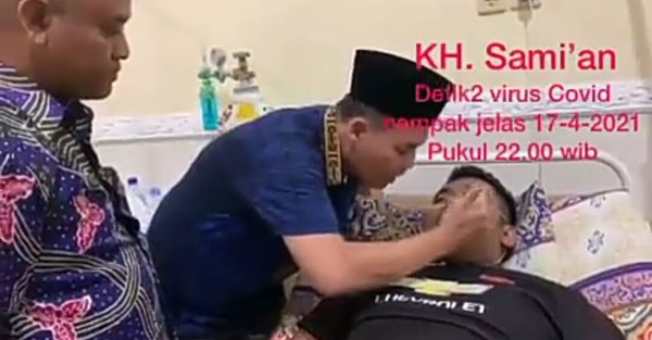 网上流传一视频,相信发生在印尼,两名疑是穆斯林的男子被指不相信新冠肺炎病毒,贴近卧病在床的病人,然后叫病人呼气,自己吸气,还用手把病人呼出的气“扫”进自己嘴里,以为没事。