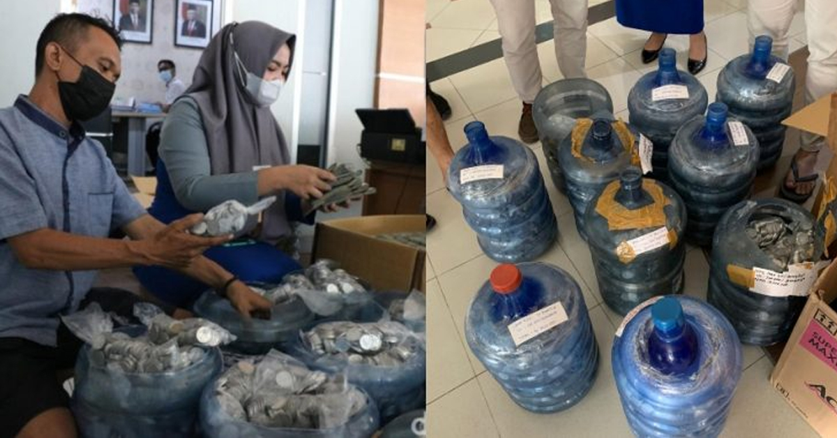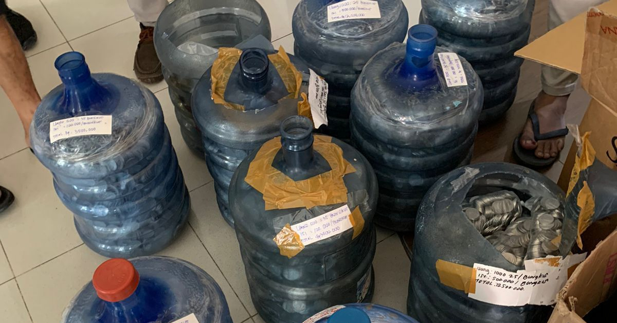 阿斯里雅迪也说,当他看到用来存硬币的容器已经满了过后,便将硬币取出,稍微点算后发现,这些硬币已经过亿印尼盾。